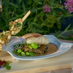 Les hôtes peuvent essayer des plats de la cuisine française au restaurant.